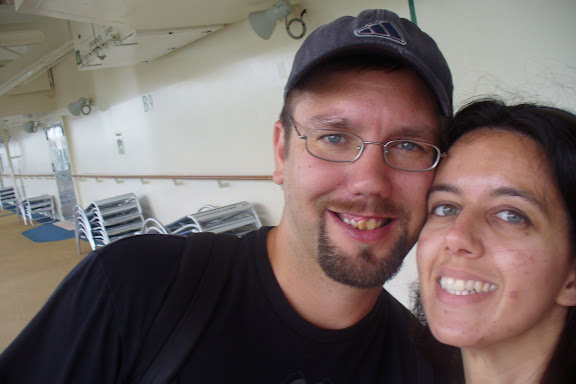 Getting on to the ship was similar to getting on a plane, as far as the level of security. We didn't have to remove our shoes or take liquids out of our carry-ons, but other than that, it was very much the same. And like I said, the building was huge--designed to deal with literally thousands of people, if necessary. We went through all the procedure of checking in and were pleasantly surprised to learn we could go ahead and board the ship. As soon as we got on deck, we took a picture.